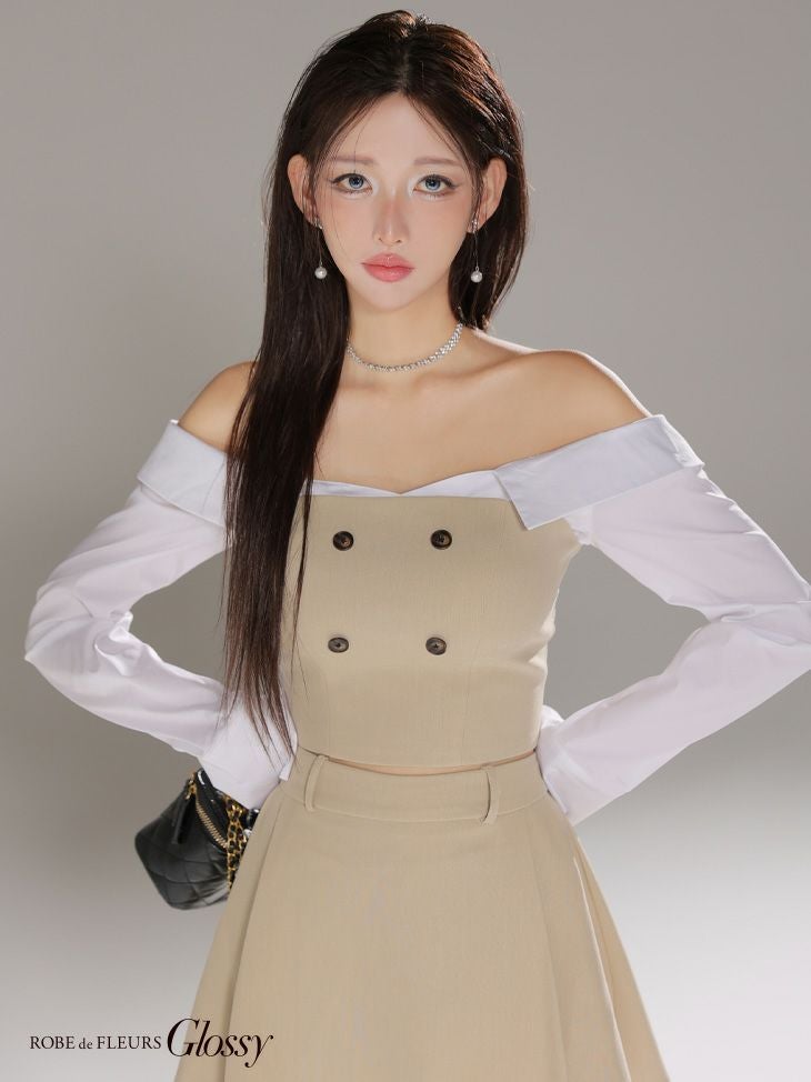 他の画像を見る XSあり!トレンド感抜群のデザイン☆ 【Glossy by ROBE de FLEURS/グロッシー】オフショルダー ベアデザイン フロントボタン 長袖 セットアップ セクシー 2way フレアミニドレス (GL4324) ¥ 28,380 税込 詳細を見る お気に入りに登録する