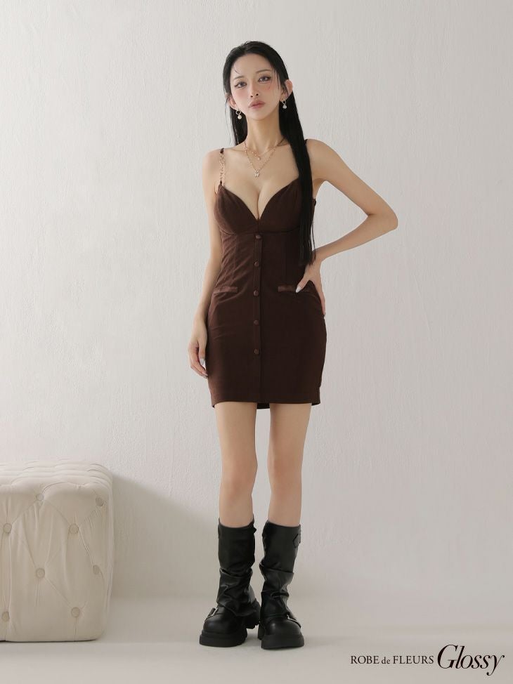 他の画像を見る XSあり!高級感抜群☆ 【Glossy by ROBE de FLEURS/グロッシー】フロントボタン フェイクスエード セクシー キャミソール オープンバスト タイトミニドレス (GL3944) ¥ 26,180 税込 詳細を見る お気に入りに登録する