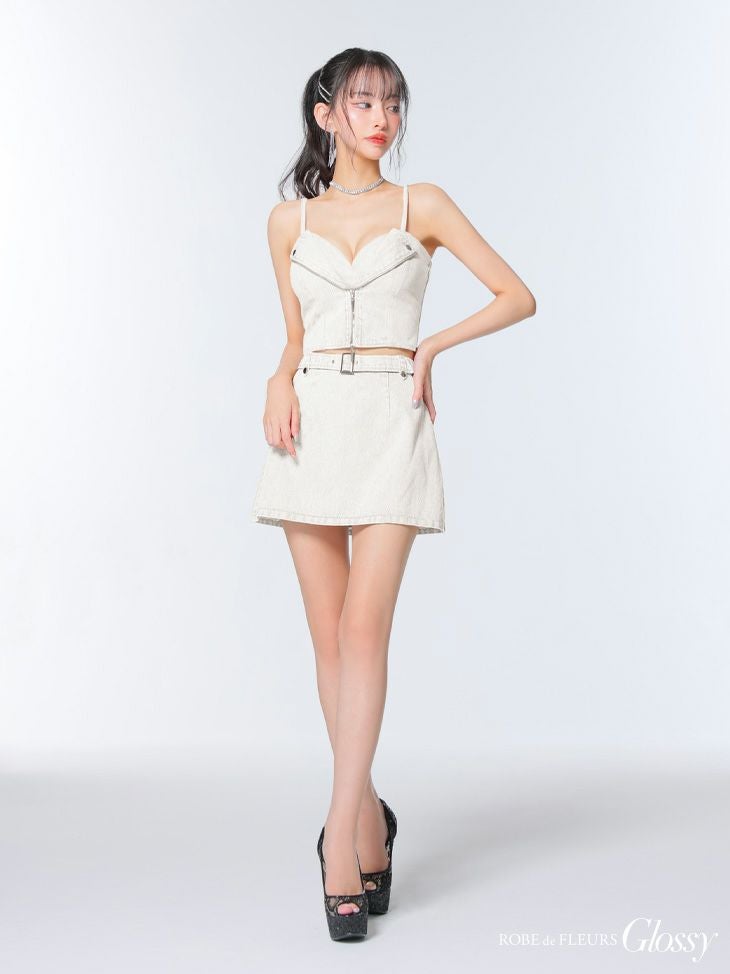 他の画像を見る XSあり!ウエストベルトでスタイルアップ抜群◎ 【Glossy by ROBE de FLEURS/グロッシー】ウエストベルト ハートカット ジップデザイン デニム キャミソール セットアップ タイトミニドレス (GL4142) ¥ 27,280 税込 詳細を見る お気に入りに登録する