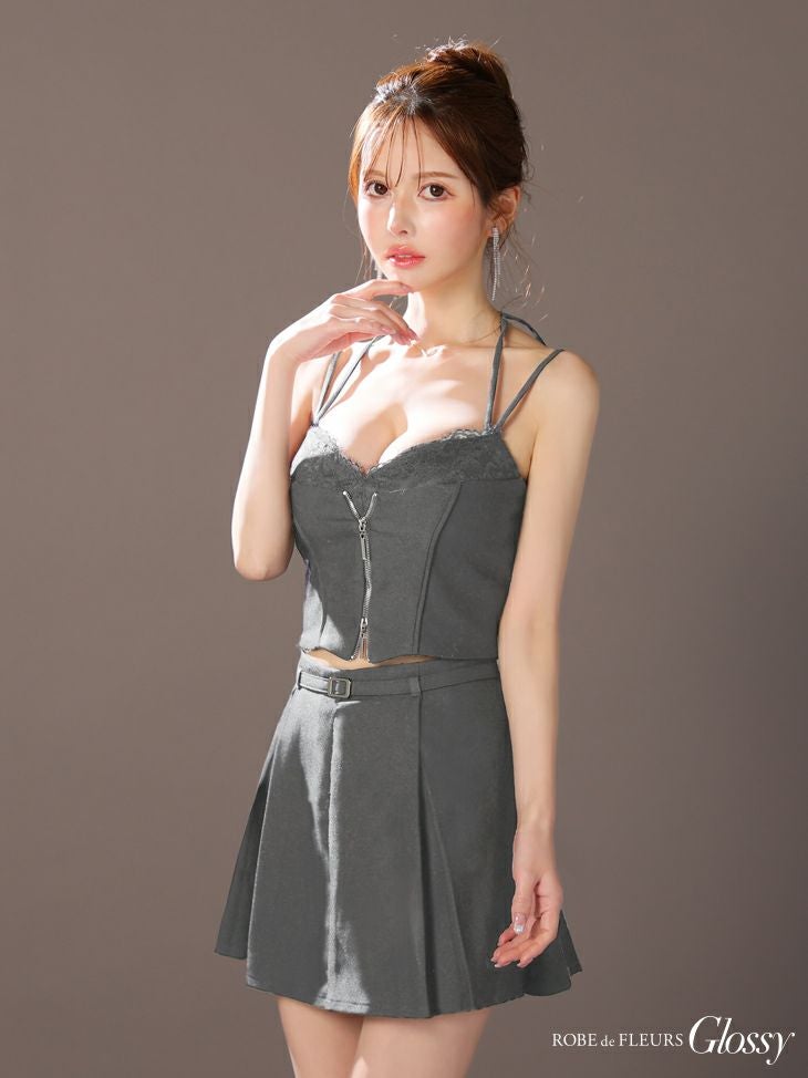 他の画像を見る XSあり!視線を釘付けにする色っぽさ♡ 予約商品【2月中旬入荷予定】【Glossy by ROBE de FLEURS/グロッシー】フロントレース セットアップ ジップデザイン キャミソール ビスチェ風 ウエストベルト プリーツ フレアミニドレス (GL4120) 予約 ¥ 27,280 税込 詳細を見る お気に入りに登録する
