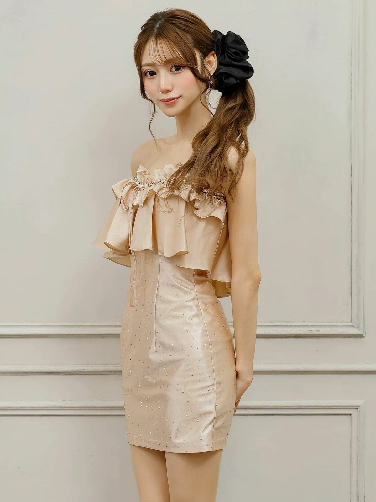 他の画像を見る XSあり!上品な輝きを放つ♪ 【Angel R/エンジェルアール】ベアトップ キャミソール バストフリル Vカット ビジュー フェミニン 2way タイトミニドレス (AR25243) ¥ 29,480 税込 詳細を見る お気に入りに登録する