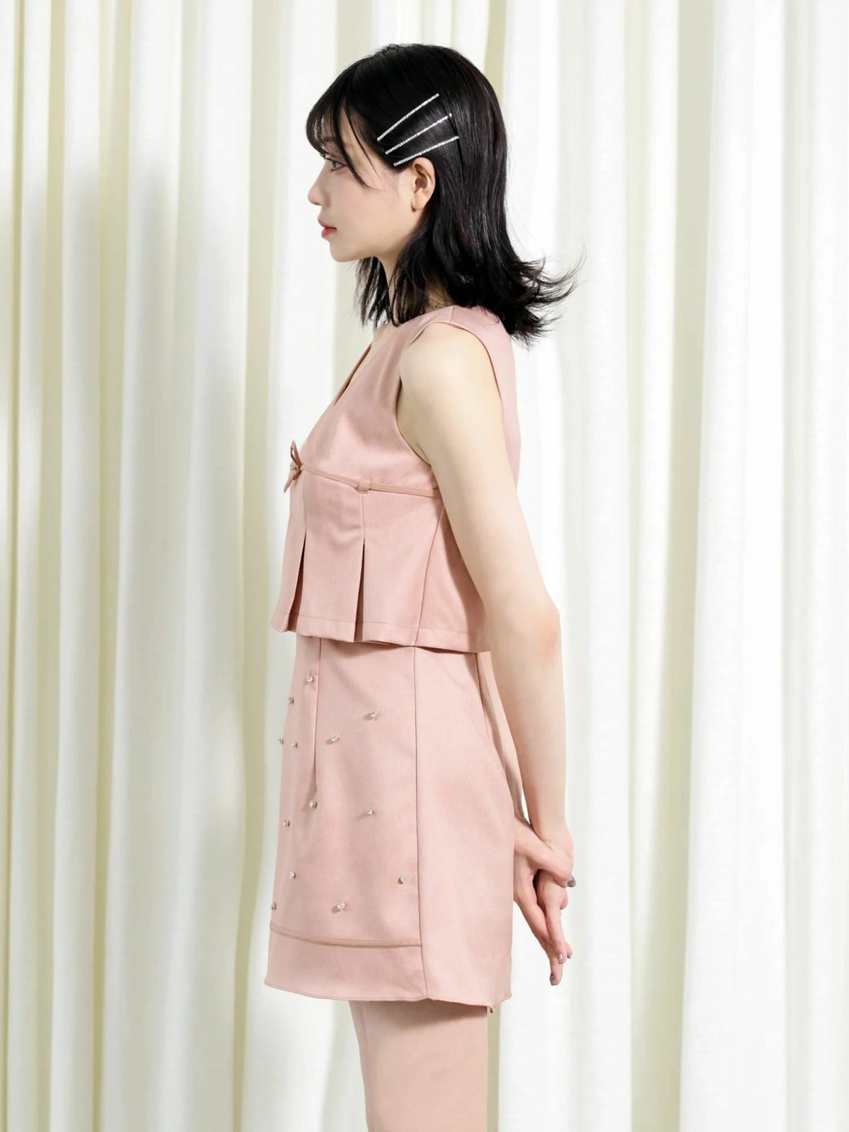 他の画像を見る XSあり!大人ガーリーな一着♡ 【Angel R/エンジェルアール】リボン ビジュー ノースリーブ プリーツ パール フレアミニドレス (AR25223) ¥ 28,380 税込 詳細を見る お気に入りに登録する