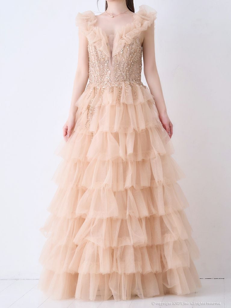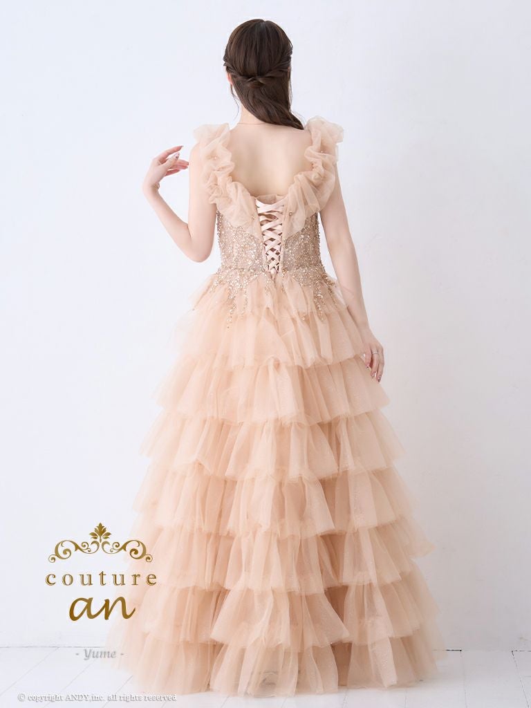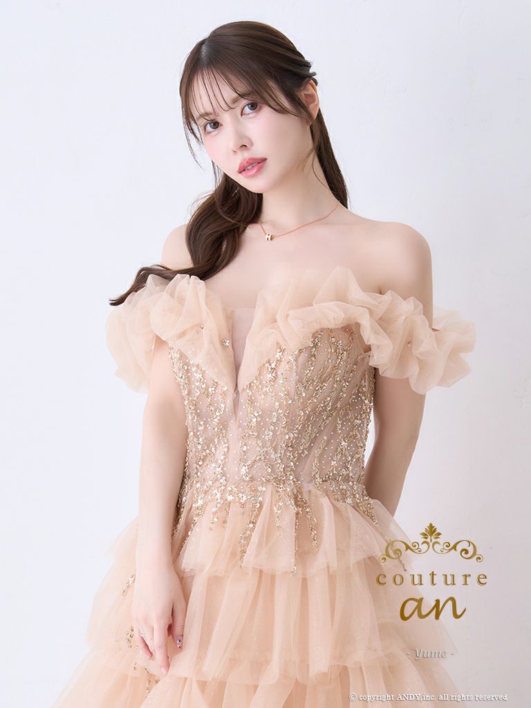他の画像を見る デコルテを美しく魅せる♪ 【couture an/クチュール アン】オフショルダー ラメ ビジュー シアー フリル ティアード チュール レースアップ バースデー Aラインロングドレス(aocwd030) ¥ 99,000 税込 詳細を見る お気に入りに登録する