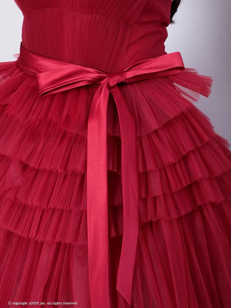 他の画像を見る チュールのデザインでお洒落見え♪ 【couture an/クチュール アン】ワンカラー ウエストリボン ベアトップ フリル チュール レースアップ バースデー Aラインロングドレス(aocwd017) ¥ 143,000 税込 詳細を見る お気に入りに登録する