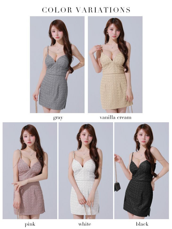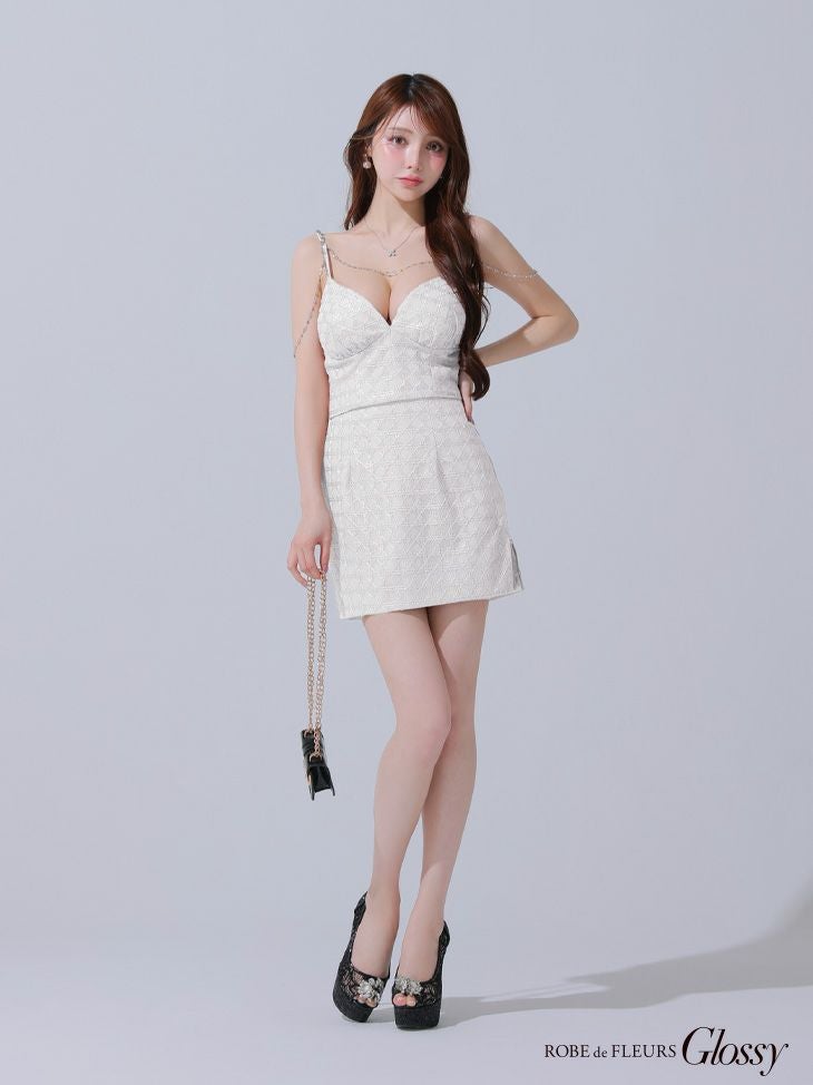 他の画像を見る XSあり!大人sexyに魅せる♪ 【Glossy by ROBE de FLEURS/グロッシー】ラメツイル セクシー キャミソール ゴールドチェーン セットアップ タイトミニドレス(GL3916) ¥ 29,480 税込 詳細を見る お気に入りに登録する