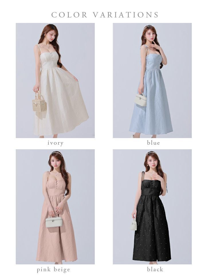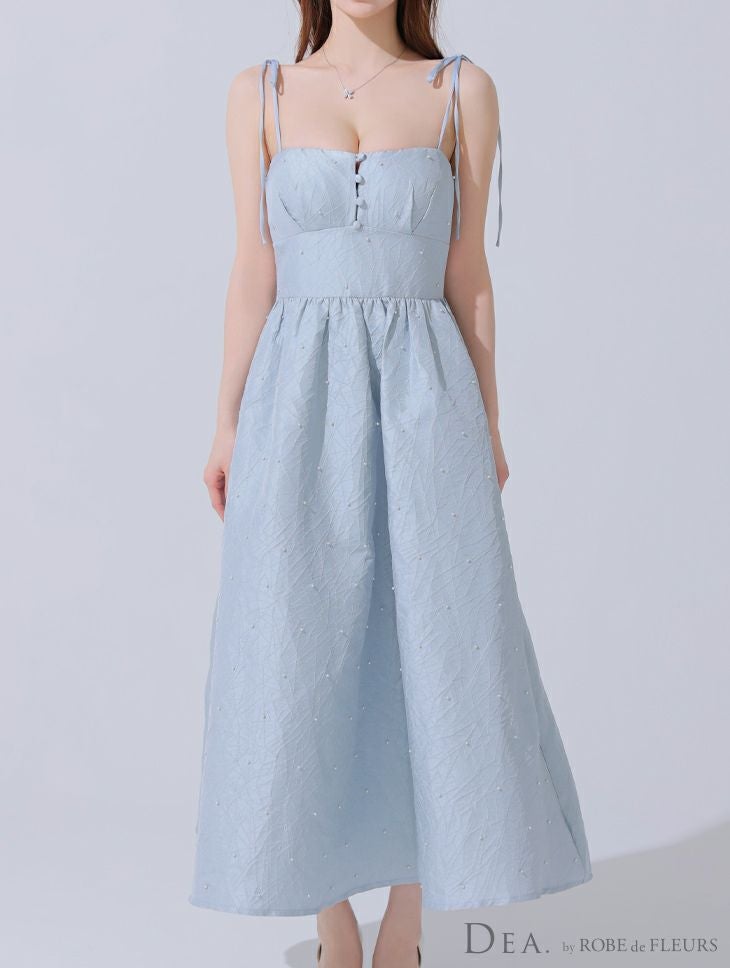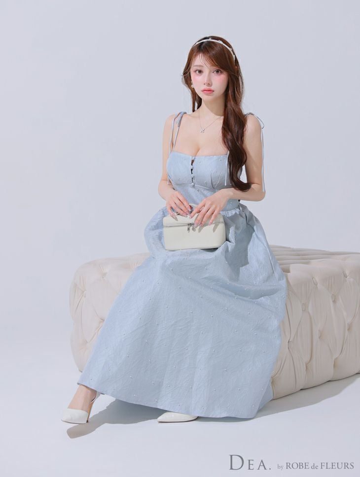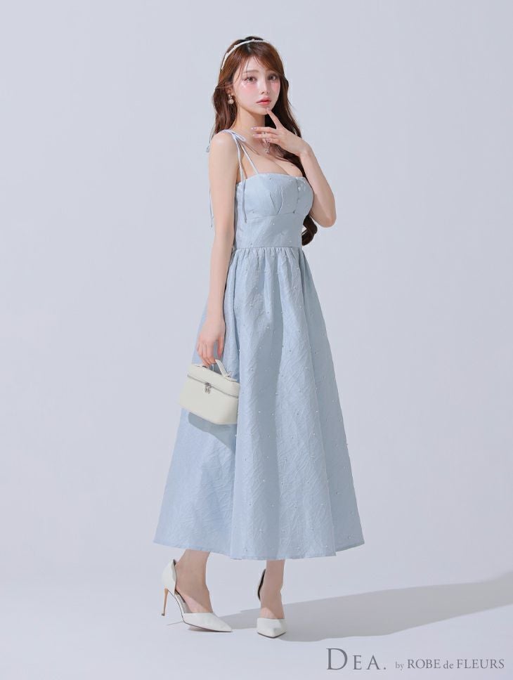 他の画像を見る Lあり!爽やかロングワンピース♡ 【DEA.by ROBE de FLEURS/ディア】パール シンプル ジャガード サテン キャミソール ワンカラー Aラインロングドレス(DE3591) ¥ 32,780 税込 詳細を見る お気に入りに登録する