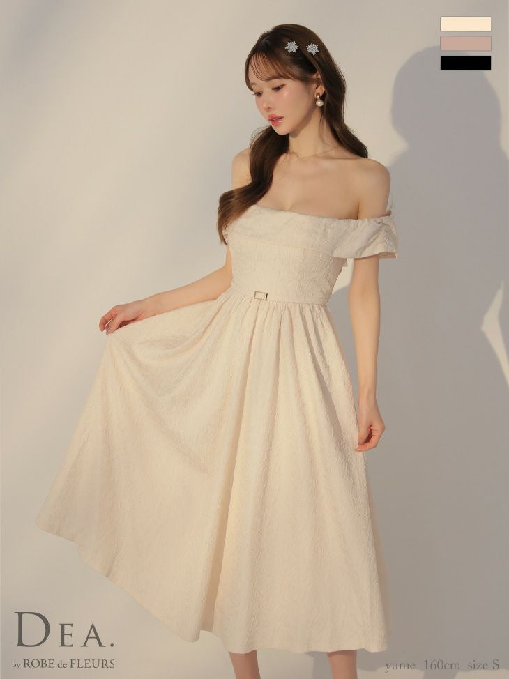 他の画像を見る Lあり!女性らしいエレガントなデザイン★ 【DEA.by ROBE de FLEURS/ディア】ベルトデザイン ジャガード バックリボン エレガント オフショルダー Aラインロングドレス(DE3449) ¥ 31,680 税込 詳細を見る お気に入りに登録する