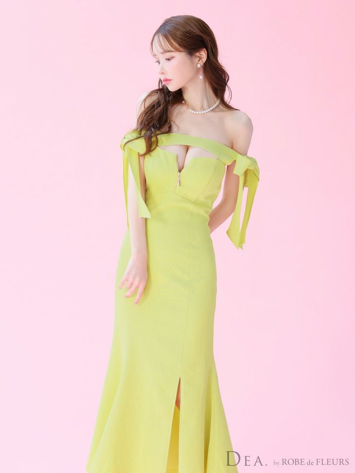 他の画像を見る Lあり!sexyな谷間みせデザイン♡ 【DEA.by ROBE de FLEURS/ディア】ジップデザイン リボン オフショルダー ワンカラー スリット マーメイドロングドレス(DE3596) ¥ 31,680 税込 詳細を見る お気に入りに登録する
