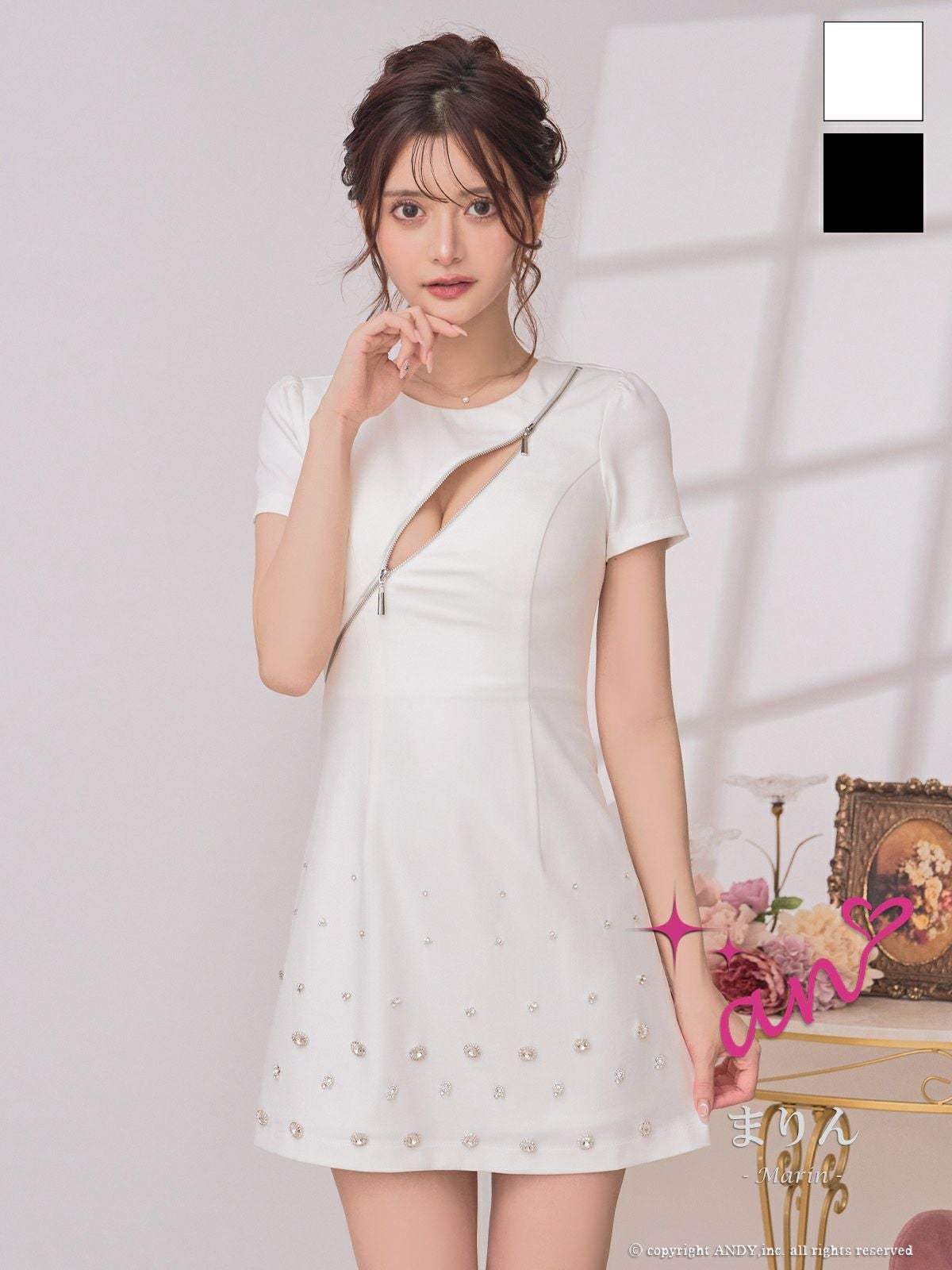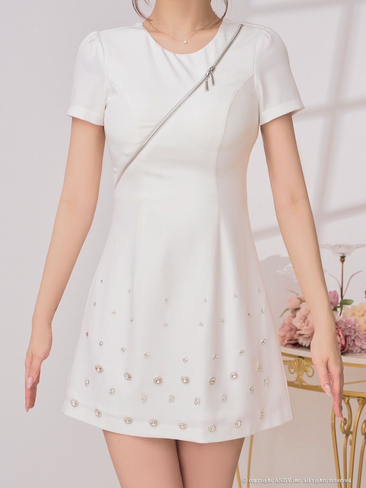 他の画像を見る XSあり!デザイン性のあるビジューが高級感アップ☆ 【an/アン】ワンカラー ジップデザイン ビジュー シンプル 半袖 フレアミニドレス(aoc3955) ¥ 28,600 税込 詳細を見る お気に入りに登録する
