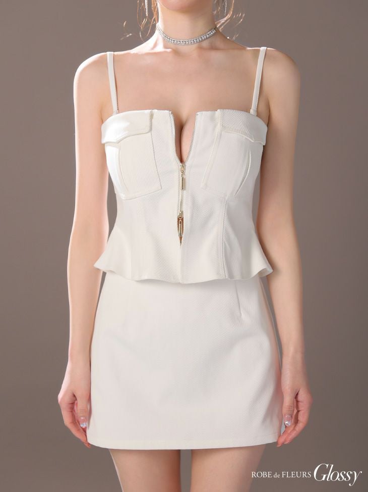 他の画像を見る XSあり!シンプルに色っぽい♪ 【Glossy by ROBE de FLEURS/グロッシー】オープンバスト 2way セットアップ セクシー キャミソール ペプラム ジップデザイン タイトミニドレス (GL3443) ¥ 29,480 税込 詳細を見る お気に入りに登録する