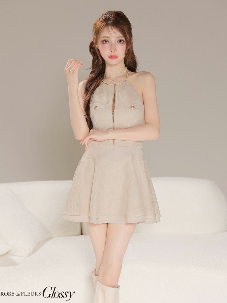 他の画像を見る XSあり!高級感抜群☆ 【Glossy by ROBE de FLEURS/グロッシー】ジップデザイン チェック柄 レース ツイル セットアップ モード ホルターネック フレアミニドレス (GL4218) ¥ 28,380 税込 詳細を見る お気に入りに登録する