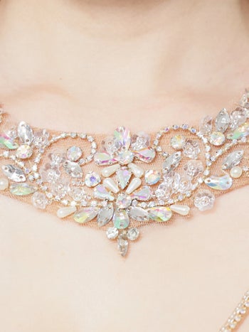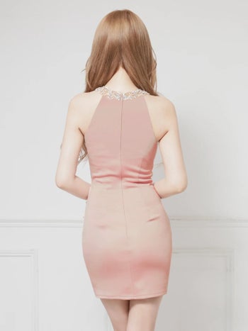 4. 【Angel R/エンジェルアール】シフォンドレープ パールチェーン ビジュー ホルターネック タイトミニドレス (AR25230)