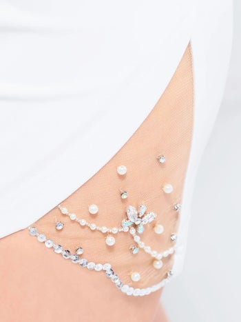 3. 【Angel R/エンジェルアール】オープンバスト 肩あき シフォン くびれ透け ビジュー セクシー タイトミニドレス (AR25304)
