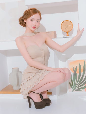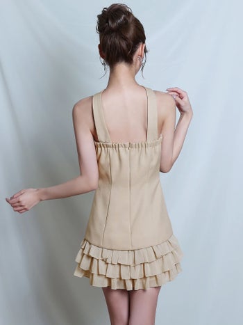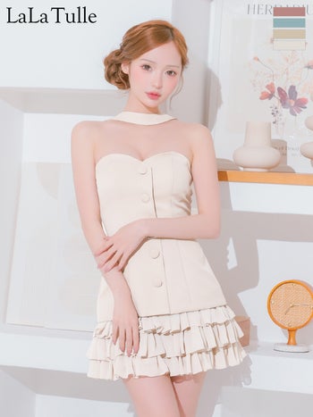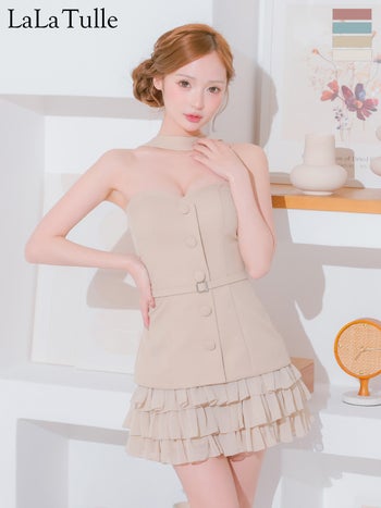 4. 【Angel R/エンジェルアール】ウエストベルト フリル 2way ベアトップ ボタン チョーカーデザイン フレアミニドレス (AR26208)