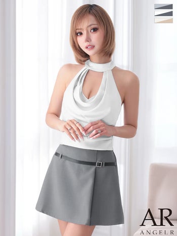 4. 予約商品【4月上旬入荷予定】【Angel R/エンジェルアール】ホルターネック バストオープン ドレープ ウエストベルト シフォン バイカラー セットアップ フレアミニドレス (AR26212)