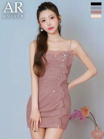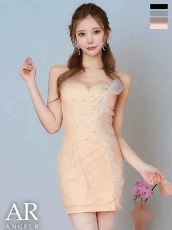 キャバドレス Angel R エンジェルアール 2way ベアトップ キャミソール Vカット チュール ビジュー フリル タイトミニドレス
