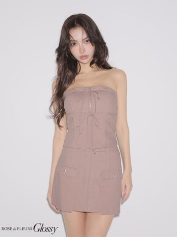 4. 【Glossy by ROBE de FLEURS/グロッシー】ジップデザイン ポケットデザイン セットアップ ワンカラー ベア リボン タイトミニドレス (GL4358)