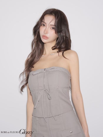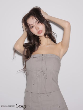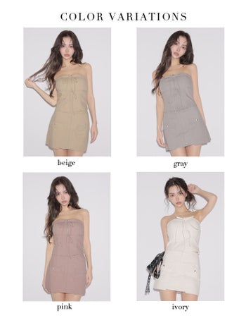 3. 【Glossy by ROBE de FLEURS/グロッシー】ジップデザイン ポケットデザイン セットアップ ワンカラー ベア リボン タイトミニドレス (GL4358)