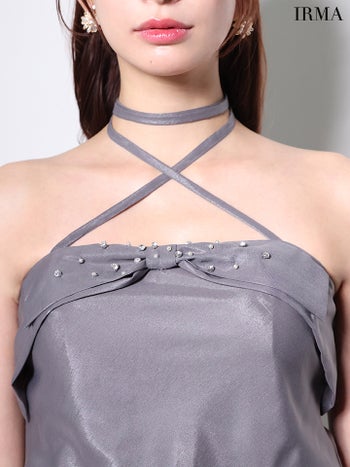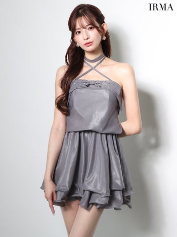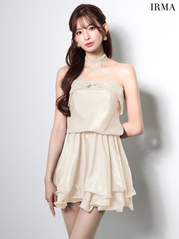 4. 【IRMA/イルマ】バストリボン ビジュー フリル 2way ホルターネック フレアミニドレス (51982)