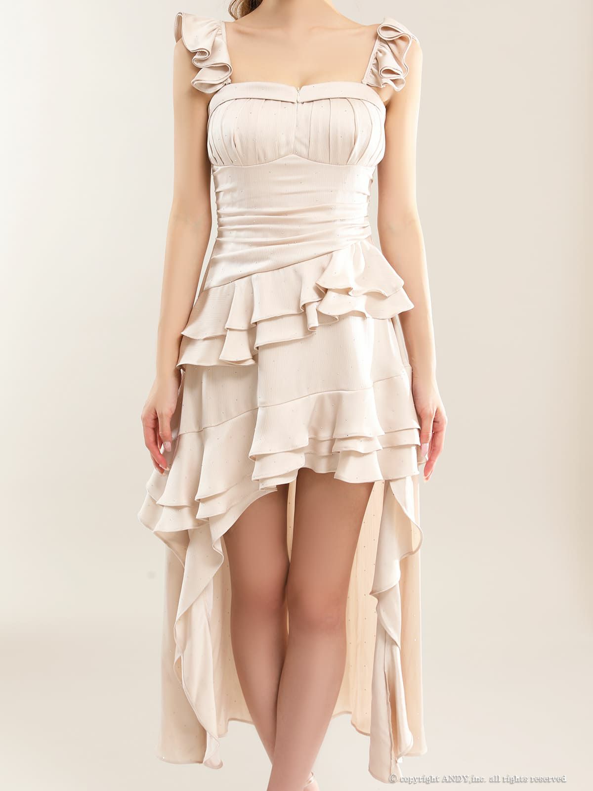 他の画像を見る XSあり!テールカットで美脚アピール♪ 【an/アン】キャミソール 2way ベアトップ ジップデザイン ビジュー ドット柄 フリル ティアード タック ロングテールドレス(aoc4041) ¥ 31,900 税込 詳細を見る お気に入りに登録する