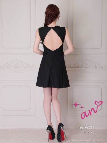 キャバドレス an ジップデザイン ノースリーブ バックカット プリーツ リボン ビジュー フレアミニドレス