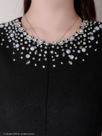 4. 【an/アン】ジップデザイン バックカット ノースリーブ プリーツ リボン ビジュー フレアミニドレス(aoc4027)