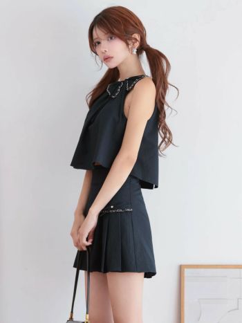 3. 予約商品【2月下旬入荷予定】【Angel R/エンジェルアール】セットアップ 襟付き ノースリーブ プリーツスカート リボン ポケット チェーン フレアミニドレス (AR25864)
