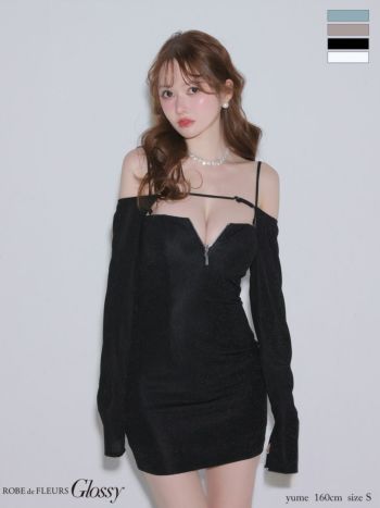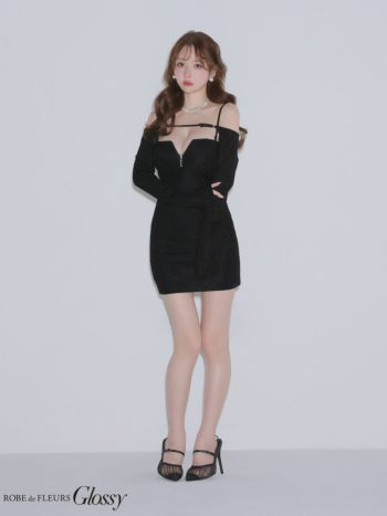 3. 【Glossy by ROBE de FLEURS/グロッシー】ラメニット 3way キャミソール ベア ボレロ ジップデザイン 長袖 タイトミニドレス (GL4143)