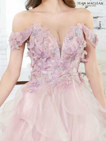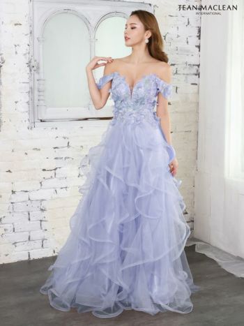 4. 【JEANMACLEAN/ジャンマクレーン】立体フラワーモチーフ オフショルダー チュールレース ワンカラー フレアロングドレス(41616)