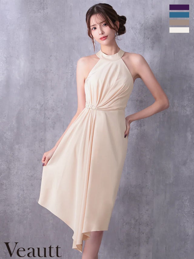 他の画像を見る XSあり!アシメ裾がエレガントな動きに♪ 【Veautt/ヴュート】ホルターネック ウエストベルト アシンメトリー ワンカラー タック 膝丈ドレス (VT022601) ¥ 30,580 税込 詳細を見る お気に入りに登録する