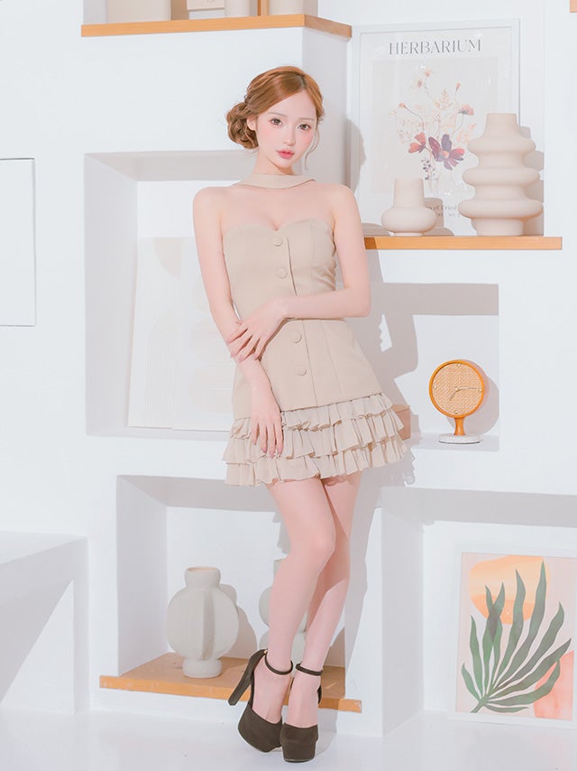 他の画像を見る XSあり!甘さの中に上品さを感じさせるデザイン 【ROBEdeFLEURS/ローブドフルール】ラメシフォン サテン フリルレイヤード ホルターネック セットアップ タイトミニドレス (fm4346) ¥ 27,280 税込 詳細を見る お気に入りに登録する