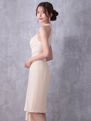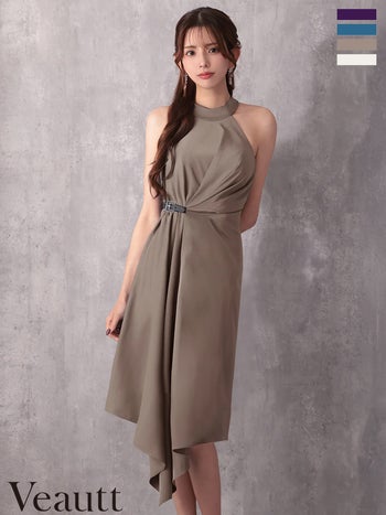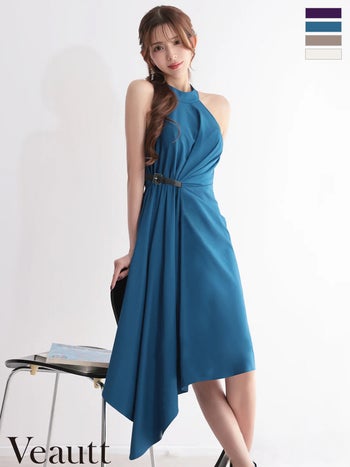 キャバドレス Veautt ヴュート ホルターネック ウエストベルト アシンメトリー ワンカラー タック 膝丈ドレス