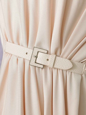 4. 【Veautt/ヴュート】ホルターネック ウエストベルト アシンメトリー ワンカラー タック 膝丈ドレス (VT022601)