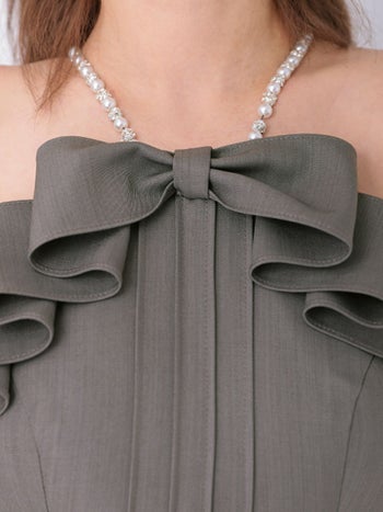 XSあり!バストリボンが可愛くて華やか♪ 予約商品【2月下旬入荷予定】【Angel R/エンジェルアール】パールショルダー フリルリボン キャミソール ガーリー フレアミニドレス (AR25235)