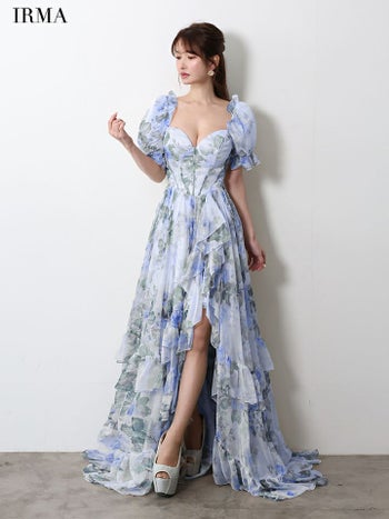 キャバドレス IRMA イルマ 2way オフショルダー 花柄 バースデー バックスピンドル フリル ロングテールドレス