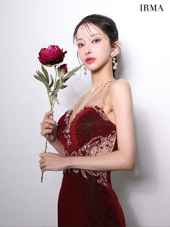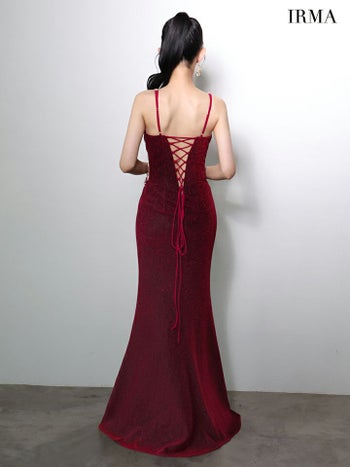 美しさに思わず見惚れる♡ 予約商品【4月下旬入荷予定】【IRMA/イルマ】ノースリーブ ビジュー ラメニット バースデー バックレースアップ スリット タイトロングドレス(51971)
