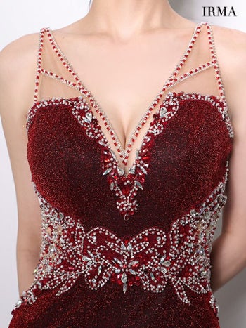 3. 予約商品【4月下旬入荷予定】【IRMA/イルマ】ノースリーブ ビジュー ラメニット バースデー バックレースアップ スリット タイトロングドレス(51971)