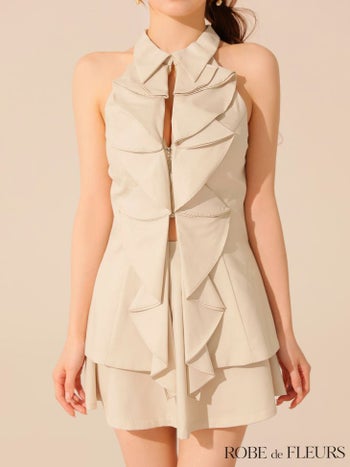 キャバドレス ROBEdeFLEURS ローブドフルール ホルターネック ジップデザイン ガーリー セットアップ フリル 襟付き フレアミニドレス