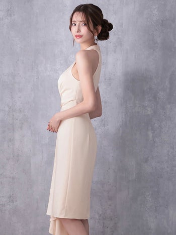 キャバドレス Veautt ヴュート タック アシンメトリー ワンカラー ホルターネック ウエストベルト 膝丈ドレス
