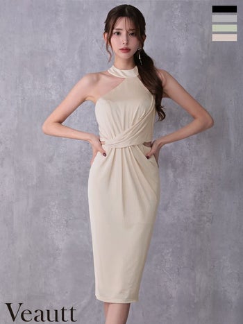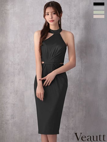 キャバドレス Veautt ヴュート サイドカット アシンメトリー ウエストクロス ホルターネック 膝丈ドレス