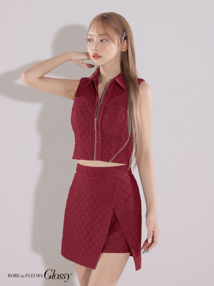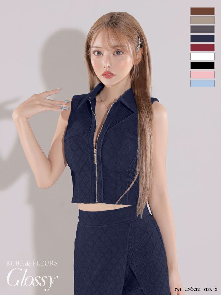 他の画像を見る XSあり!シンプルでかっこいい♪ 【Glossy by ROBE de FLEURS/グロッシー】セットアップ ワンカラー ジャガードニット ジップデザイン ノースリーブ 襟付き ラップスカート タイトミニドレス(GL3261) ¥ 27,280 税込 詳細を見る お気に入りに登録する