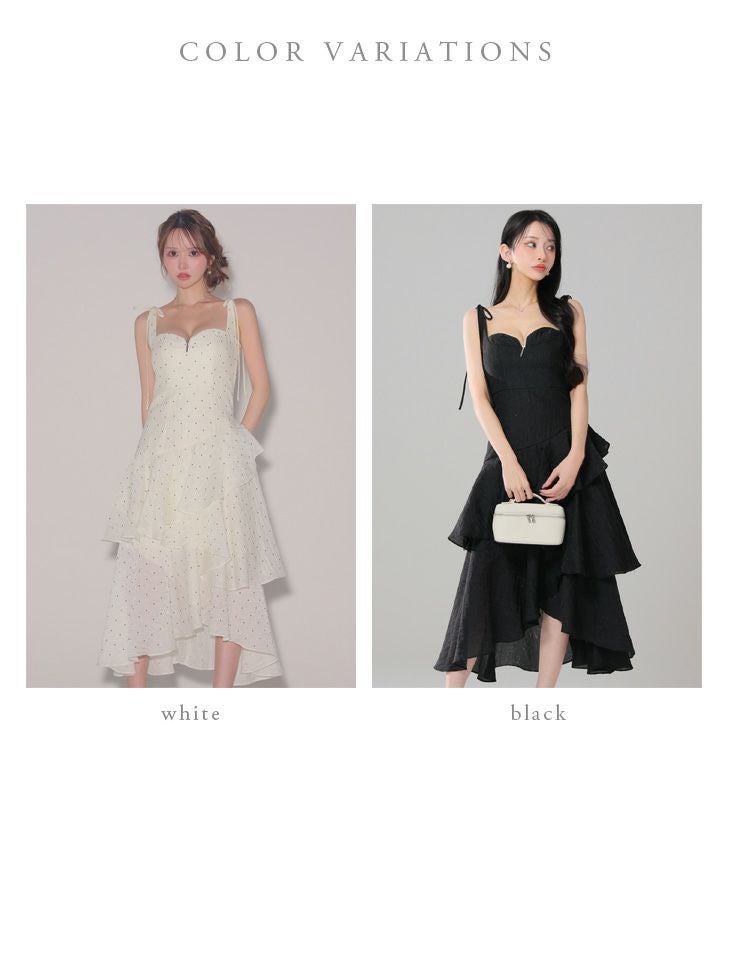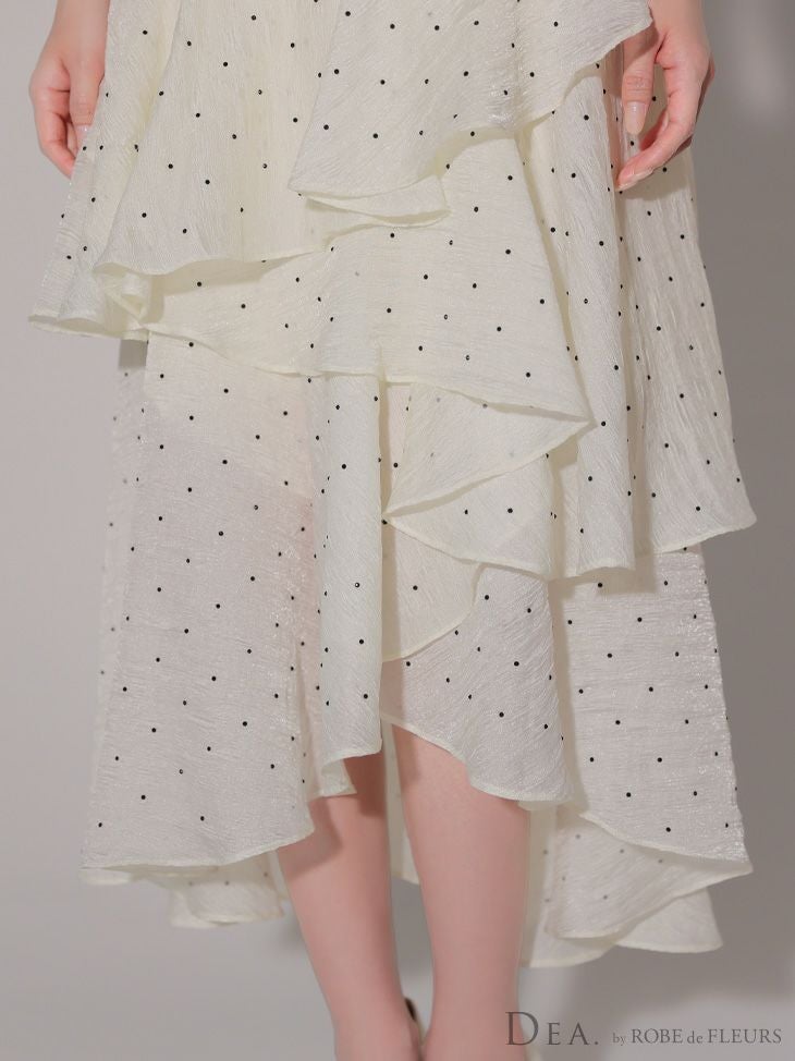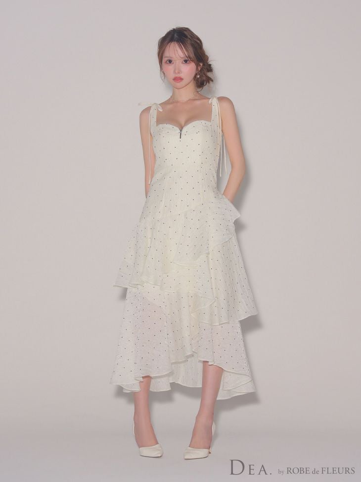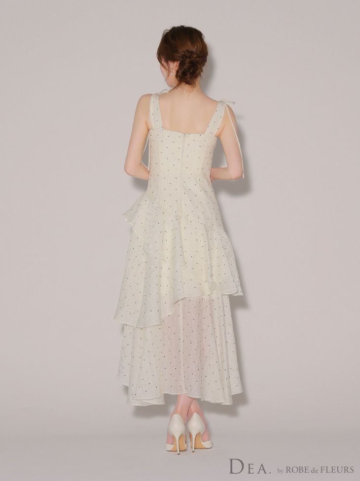 他の画像を見る XS~Lあり!動くたびに上品に煌めく★ 【DEA.by ROBE de FLEURS/ディア】ノースリーブ リボン オープンバスト ジップデザイン ビジュー ジャガード フリル ティアード ドット柄 エレガント Aラインロングドレス(DE4304) ¥ 34,980 税込 詳細を見る お気に入りに登録する