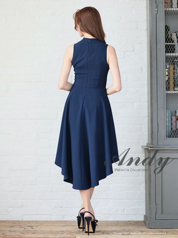 3. 【Andy/アンディ】ギャザーデザイン リボン ハイネック ジップデザイン ノースリーブ ロングテールドレス(anon2934)