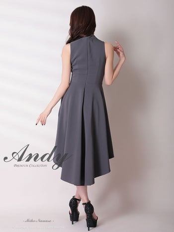 キャバドレス Andy アンディ ギャザーデザイン リボン ハイネック ジップデザイン ノースリーブ ロングテールドレス