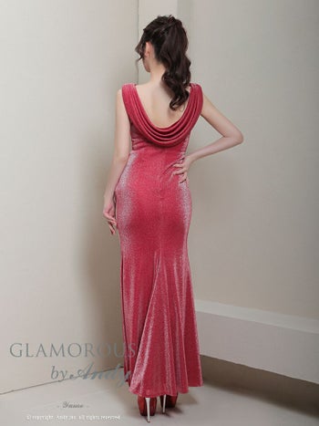キャバドレス GLAMOROUS グラマラス ラメ ワンカラー ノースリーブ スリット タックデザイン ドレープ タイトロングドレス