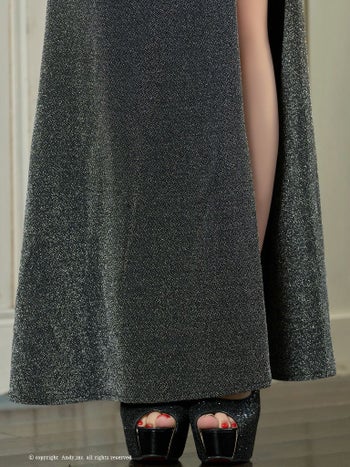 スリット ラメ ワンカラー ノースリーブ タックデザイン ドレープ タイトロングドレスのメイン画像4