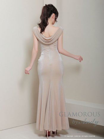 キャバドレス GLAMOROUS グラマラス スリット ラメ ワンカラー ノースリーブ タックデザイン ドレープ タイトロングドレス