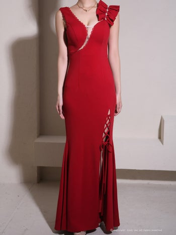 4. 【GLAMOROUS/グラマラス】ノースリーブ バストカット フリル レースアップ スリット タイトロングドレス(gmsv884)