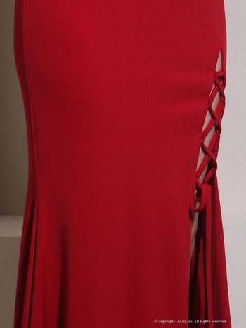 ノースリーブ バストカット フリル レースアップ スリット タイトロングドレスの全身サイド画像1