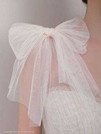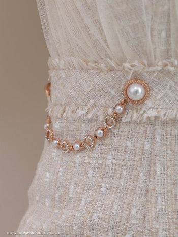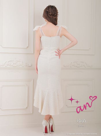 3. 【an/アン】ツイード リボン ノースリーブ マーメイド パールチェーン ロングテールドレス(aoc3619)